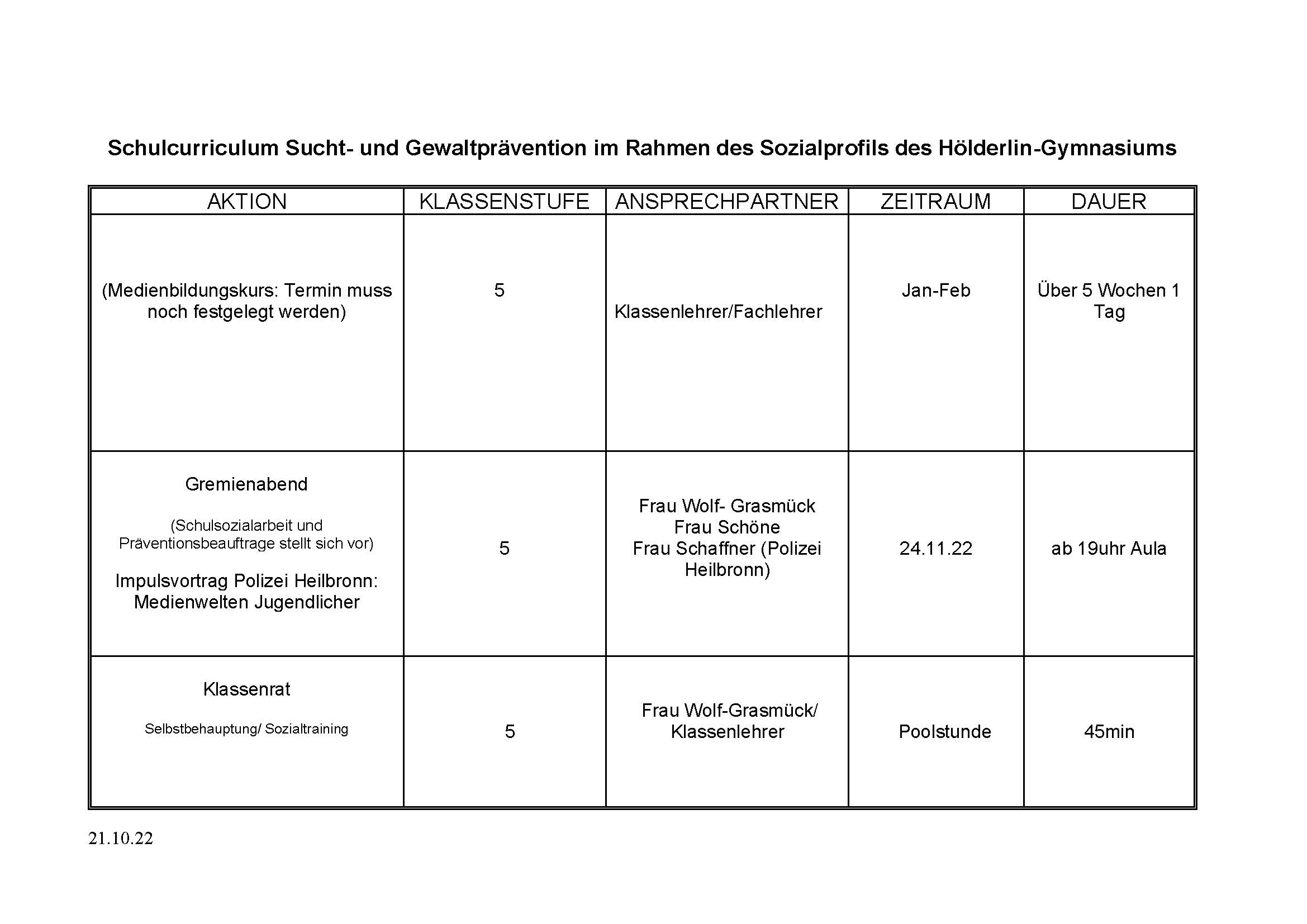 Die Schule ist nicht nur Bildungseinrichtung, sondern auch Lebensraum und geht über das hinaus, was man lehren und lernen kann. Oft kann daher professionelle Beratung und Unterstützung notwendig werden – am Hölderlin-Gymnasium beispielsweise durch unsere Beratungslehrerin Andrea Grobshäuser oder die Schulsozialarbeit um Katharina Wolf-Grasmück. Um Herausforderungen, Problemen und Konflikten frühzeitig zu begegnen, hat das Högy außerdem ein umfassendes Präventionskonzept, für das Nicole Schöne federführend verantwortlich zeichnet. Dementsprechend gibt es regelmäßig Veranstaltungen unter anderem zur Drogen- und Gewaltprävention, zuletzt etwa verschiedene Module des Projekts „Achtung?!“ für die Klassenstufen 9 und 12. Dabei wurde anhand einer Aufführung des Theaters Q-Rage und eines Workshops unter der Leitung von Paul Marx (Inside Out e.V.), unterstützt von der Polizei Heilbronn, die gefährliche Radikalisierung Jugendlicher thematisiert.